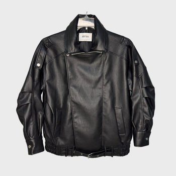 女式超大号仿皮夹克秋冬时尚上衣摩托车外套时尚套装